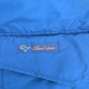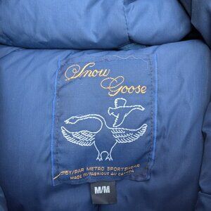 Stay warm in classic style with this vintage Snow Goose parka jacket. This men's size medium coat features a timeless blue color and a cozy faux fur trim hood. The full zip-up front and durable construction make it perfect for winter weather. A must-have for any collector of retro outerwear or someone looking to add a unique, nostalgic piece to their winter wardrobe.