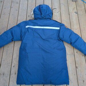 Vintage Snow Goose Parka Jacket Men's M Blue Retro Faux Fur Trim Hood Zip-Up.