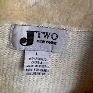 Vintage Snowflake Sequin Chenille Cardigan Sweater Womens Faux Fur Collar Cream