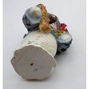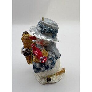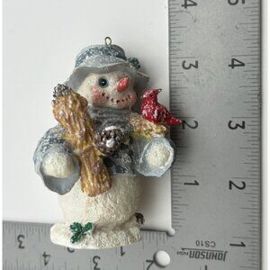 Vintage Snowman Christmas Ornament Holding Red Cardinal Bird Blue Hat & Scarf