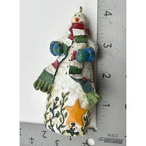 Vintage Snowman Christmas Tree Ornament With Scarf & Star Rustic