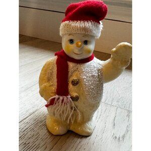 Add a festive touch to your home with this charming snowman figurine. Featuring a cozy red hat and scarf, it evokes warmth and holiday cheer. Perfect for seasonal décor, this vintage piece adds personality and nostalgia to shelves or mantles, delighting all who see it.