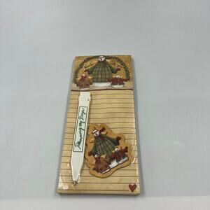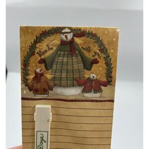 Vintage primitive snowman grocery pad/ notepad with magnetic pen and extra magnet, all sealed in original packaging.