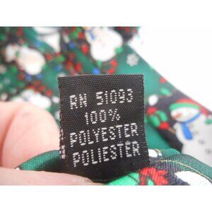 Vintage tie from an Estate - Green background with snowman and blue red green christmas lights, and in the weave there are candy canes