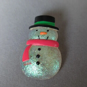 Vintage Snowman Pin- Hallmark Christmas Brooch- 80s/90s Iridescent Glitter