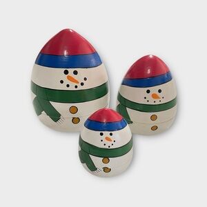 Vintage Snowman Russian Nesting Dolls (3 pieces) Wooden Largest is 3.5 Inches