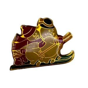 Vintage Snowman Snowwoman Puppy on Skis Skiing Pin Brooch