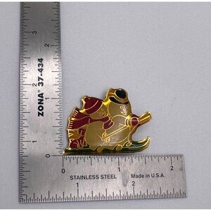 Vintage Snowman Snowwoman Puppy on Skis Skiing Pin Brooch Christmas Holiday