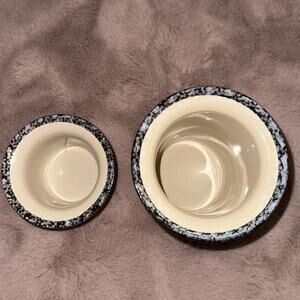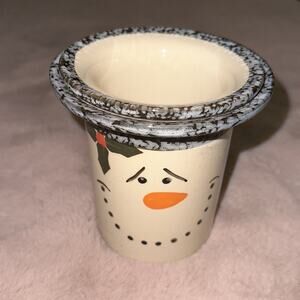 Vintage Snowman Stoneware Set Dip Serving Dish 1980s Jar Kitchen