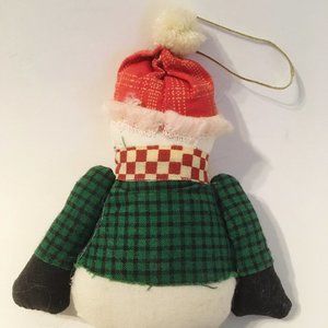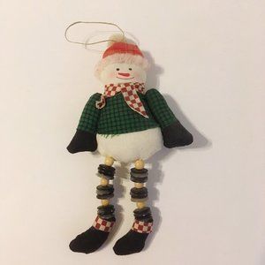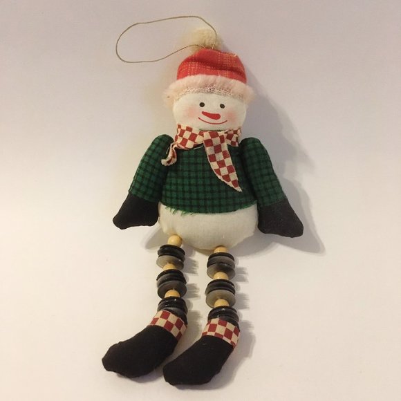 Vintage Snowman Tree Ornament Doll Fabric Bead Legs Christmas Decor Collectible