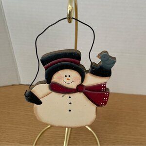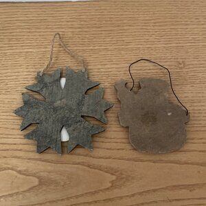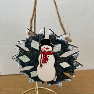 Vintage Snowman Wooden Hanging Ornament Set 2 Rustic Primitive Christmas Decor