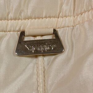 The Vintage Snuggler Ski Suit One Piece Snowsuit is a retro-inspired snowsuit designed for women in size 12. Made of durable nylon with a sleeveless design, this white one-piece features a bib style and is perfect for skiing. The Snuggler brand adds a touch of nostalgia, making it a fun and unique choice for winter sports enthusiasts. Perfect for a day on the slopes or for adding a touch of retro flair to your winter wardrobe.