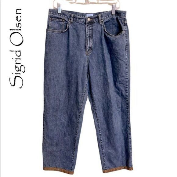 Vintage So Blue Sigrid Olsen Cropped Jeans Leather Beaded Ankle Detail 14