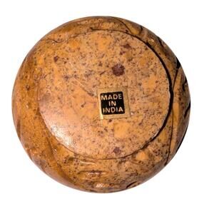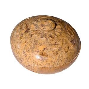 Vintage Soapstone Small Round Lidded Trinket Dish Brown Tan Made in India