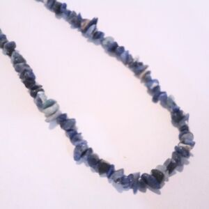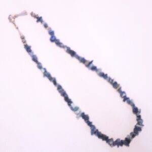 Elevate your look with this stunning Vintage Sodalite Chip Bead Necklace. Crafted with natural sodalite chip beads, this necklace exudes timeless elegance. Silver tone bead and cone accents add a touch of sophistication to the design. Measuring 18 inches in length, this necklace fastens securely with a lobster clasp. Perfect for adding a pop of color and vintage charm to any outfit, this necklace is a versatile and stylish accessory for any occasion.