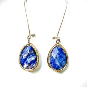 Vintage Sodalite Teardrop Earrings Gold Plate | Long Dangle Nickel-Free | Blue