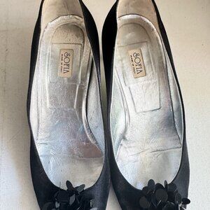 Vintage Sofia Black Satin Pointy Toe Sequin Accent Kitten Heel Hells 36