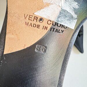 Vintage Sofia Black Satin Pointy Toe Sequin Accent Kitten Heel Hells 36.