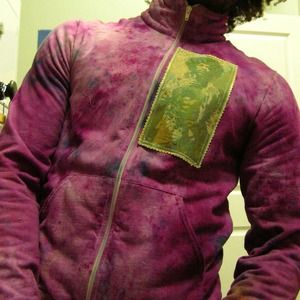 Vintage soft cotton fleece zip jacket with custom cultural art in vibrant colors. Supe-Note: Item is marked down because it is a store floor/photoshop sample and has only been worn by a mannequin and or, well...me ounce or twice.