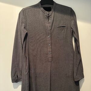 Vintage Soft Cotton Long Sleeve Mini Shirt dress with - Size 6 - Gray Chambray