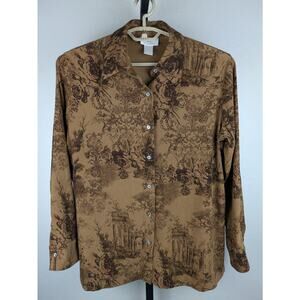 Vintage Soft Surroundings Toile Print Button Front Shirt Brown Rust
