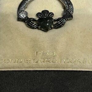 Vintage Soldor Claddagh Celtic Connemara Marble Heart Pin Brooch Irish Wedding