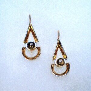 Gorgeous Vintage Custom Made Handmade Heavy solid 14K Yellow Gold Black Star Sapphire Dangle Drop Pierced Earrings (unmarked but acid tested). They are in great vintage used pre-owned condition and measure almost 1.25" in length (with hooks) by about 1/2" in their widest. 2 Black Star Sapphire Cabochons are about Pearls are about 5mm in diameter each. These unique earrings weigh about 7.8 grams and are in great vintage used pre-owned condition.