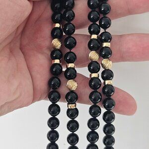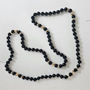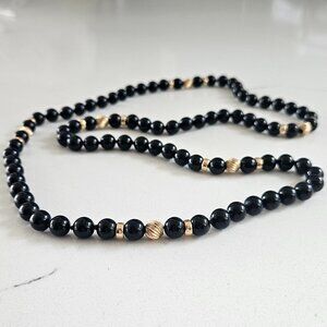 Vintage Solid 14k Yellow Gold 9.5mm Black Onyx Opera Length Necklace 30"