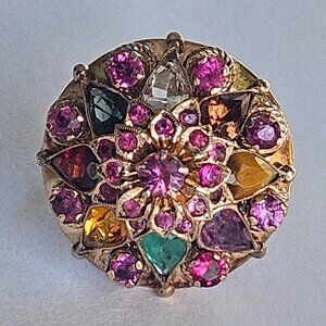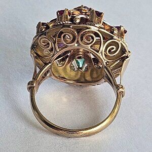 Vintage Solid 14k Yellow Gold Ruby Sapphire Emerald Princess Cocktail Ring 6.7g