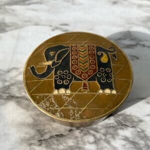 Vintage Solid Brass Elephant Enamel In Lay Box
