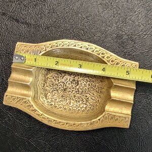 Vintage Solid Brass, Engraved Floral/Leaves Cigar/Cigarette Ashtray