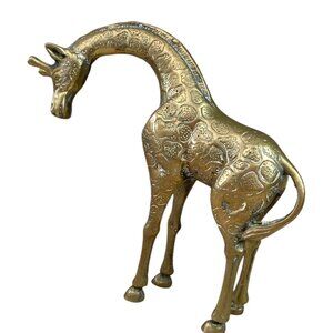 Bring a touch of wild elegance to your home with this vintage solid brass giraffe figurine ๐ฆโจ. Standing about 10.5" tall, this beautifully detailed piece features a graceful pose with a downward-tilted head and textured patterned body โ a timeless nod to mid-century safari-inspired decor.