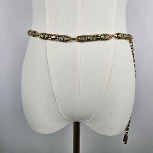 Vintage Solid Brass Gold Tone Couture Chain Ornate Chain Link Belt Boho
