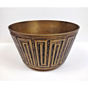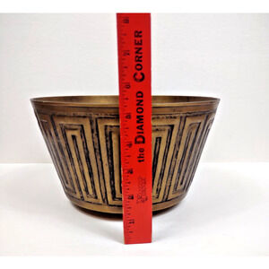 Vintage Solid Brass Heavy Jardineer Planter Urn Pot 9" Geometric Pattern Moorish - Patina Made in Korea EUC