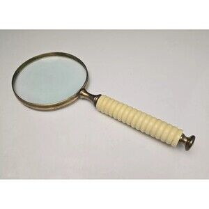 Vintage Brass Magnifying Glass With Ribbed Handle Handheld 9.5" x 4"