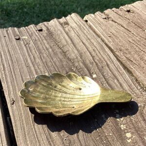 Keywords: brass dish, seashell dish, scallop dish, trinket dish, ashtray, vintage brass, etched brass, decorative dish, brass decor, coastal decor, nautical decor, vintage home, brass collectible, shell dish
