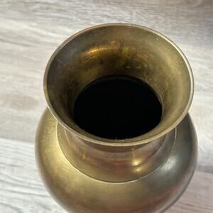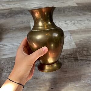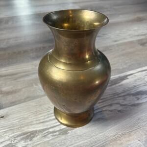 Vintage solid brass vase with classic urn silhouette and naturally aged patina. Stamped “Made in India” on base. A beautiful piece for eclectic home styling, altar decor, or dried florals. Weighty and well-formed.