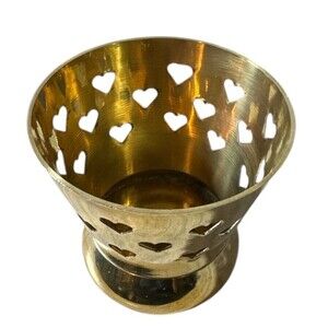 Vintage Solid Brass Votive Candle Holder with Heart Cut Outs