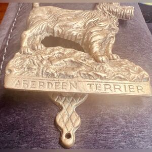 Add a touch of elegance and sophistication to your home with this vintage solid brass door knocker featuring an Aberdeen Terrier dog.