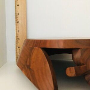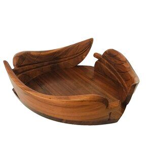 Vintage Solid Walnut Wood Mid Century Modern Bowl Leaf Motif MCM Decorative