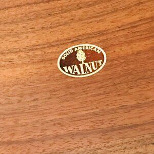 Beautifully made of thick, carved walnut wood this is a special piece. Original maker label on back "Solid American Walnut." Gorgeous 3 leaf design. Very good condition. The last 2 photos show what may be subtle flaws, or just part of the natural wood - some tiny dot marks on inside surface, and a small light area on one of the leaves.