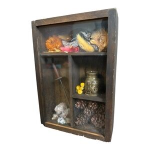 Vintage Solid Wood Witchy Whimsical Shadow Box Flowers Crystals Pinecones Etc