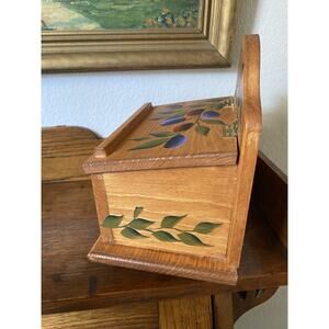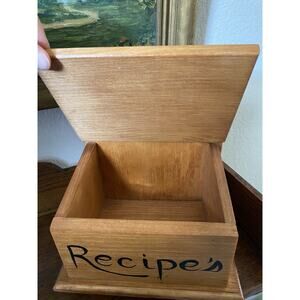 Vintage Solid Wooden Folk Art Hand Painted Lidded Recipe Storage Box
