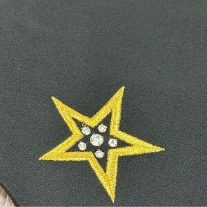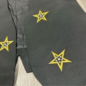 Ships fast from North Carolina! Vintage Solini New York vest featuring bold gold embroidered stars with gem accents — perfect for a western-inspired look, 90s throwback, or standout piece for festivals, concerts, or holiday parties. Great for layering over dresses, blouses, or tees. A unique vintage find that works year-round, from fall layering to New Year’s Eve styling.
