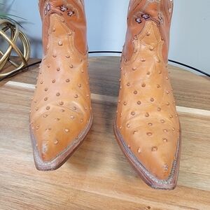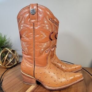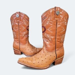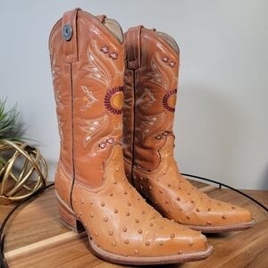 Vintage Solitario Ostrich Leather Embroidered Western Cowboy Boots Size 6