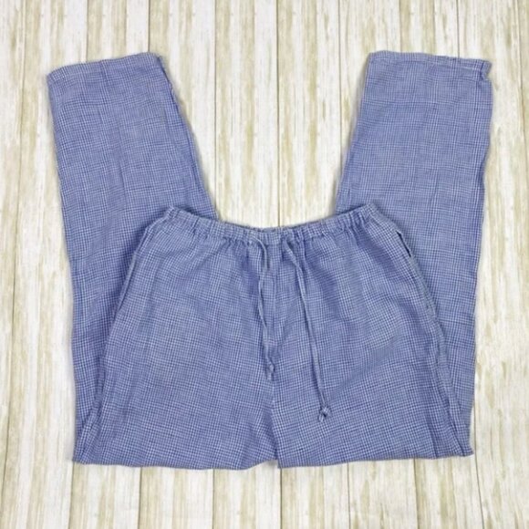 Vintage Solutions Casual Wear Blue White Gingham Linen Cotton Blend Pants