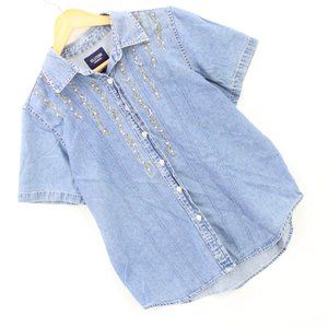 Vintage Solutions Original Denim Shirt Women's Blue Short Sleeve Button Down M