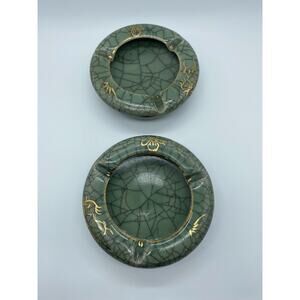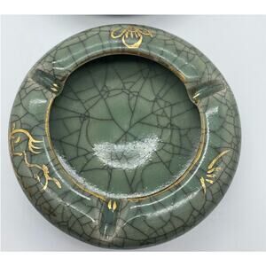Vintage Somayaki green crackle glaze ashtray Set of two gold accents.