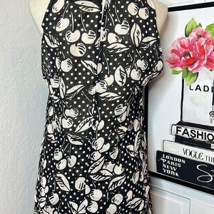 Vintage Sonia Rykiel Black & Ivory Cherry Print Linen Skirt Set Size 38/6US