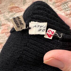 Sonia Rykiel vintage sweater in black with yellow stripes. Super unique, iconic Sonia Rykiel geometric patterns. Prob from 70s or 80s. 80% wool, 20% Angora S - the size is 42 (Euro sizing) but fits like XS-S. Crew neck.